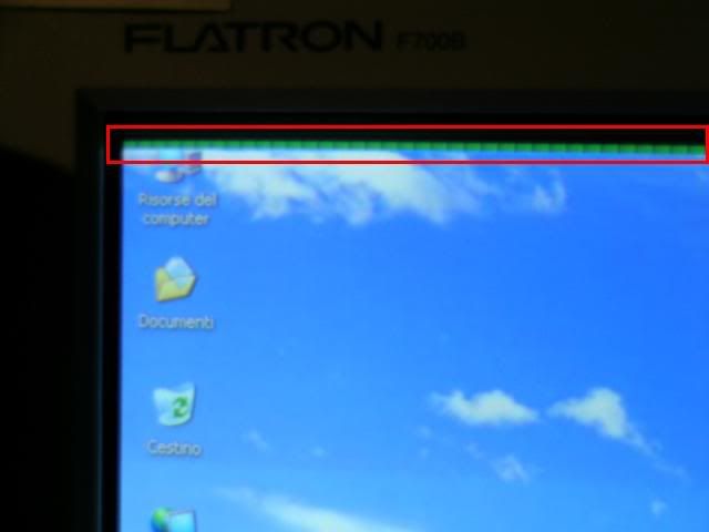 ho acquistato la MA780G-UD3H, ho messo Win XP 32 sp2 e fa un "difetto" video (visibile in foto) una striscietta verde che compare e scompare di continuo; mi sembra sia un problema di sincronia ma non posso gestire nulla a parte le risoluzioni e le frequenze. Non fa difetto ne quando si avvia ne quando gioco. Ho provato sia con monitor CRT che LCD. Ho modificato il Bios in maniera tale che riconosca solo l'uscita VGA classica e non la HDMI ma nulla ![]() ![]() Che puo essere? da cosa puo dipendere? PS: i diriver video Catalyst li ho aggiornati all'ultima versione. Help pls