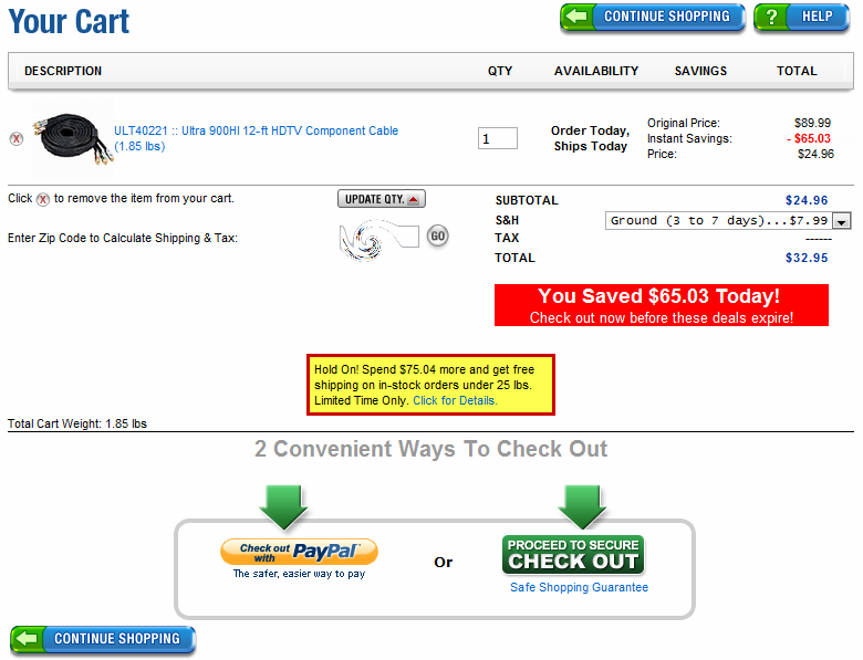 in settimana ordino il cavo!! http://www.circuitcity.com/applicati...431&CatId=1408 non è stupendo? quasi mi dispiace doverlo nascondere tutto da una parte all'altra della casa per il cavo audio sono già apposto ecco il preventivo dal sito: ![]() in tutto spenderei 32.95 dollari con un invio dai 3 ai 7 (anche se ci credo poco, mettendo il cap che nella foto ho oscurato, in italia penso ci stia molto di più ad arrivare )forse forse ci credo di più sullo sconto sul cavo, da $89.99 con uno sconto di $65.03 (il cavo mi sembra veramente di buona qualità ed è quello di cui ho bisogno sia per la distanza sia per le interferenze che si verrebbero a creare nel percorso che ha da fare il filo) circa 3 metri eh!!