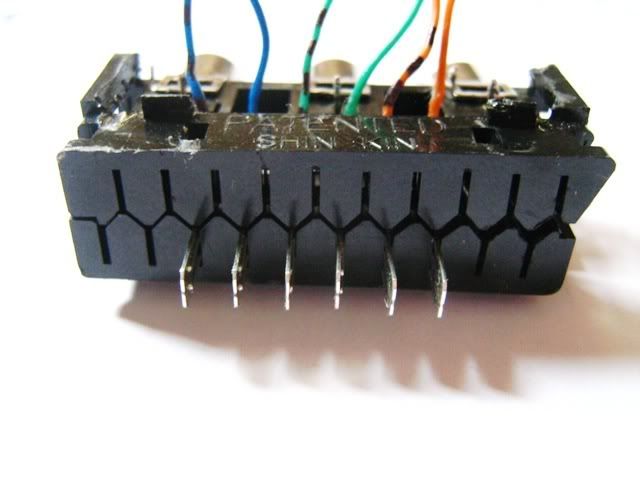 come dici tu, il cavo7-din a rca ce l'hò già, ed è questo: http://images.channeladvisor.com/Sel...BF(002)__4.jpg avevo optato anche per un unico cavo S-video standard (cioè 4pin) ma l'unica entrata che ho nella tv è anteriore e mi farebbe piuttosto schifo siccome si parla ancora di un panasonic CRT abbastanza vecchiotto, le uniche connessioni disponibili sono l'audio stereo e la presa scart (no ingressi component nel televisore) ecco riassunto il perchè di questa soluzione per l'audio invece utilizzerei un semplice sdoppiatore jack da 3.5 mm cui uno parte per le casse del pc, l'altro invece parte per l'ingresso al tv foto dopo aver smontato tutto l'adattatore composito/scart e in aggiornamento sulla modifica componente/scart! pin componente: ![]() pin masse componente: ![]() tutti i pin insieme: ![]() semimontato: ![]() ![]() come vedi ora mi basta saldare i cavi che fuoriescono ai rispettivi pin che vedi nell'ultima foto delle rca.. e forse dovrebbe andare se per caso qualcuno se ne intende di più e sà dirmi se manca un qualche pin di riferimento, sono ben accetto ad ascoltare dato che l'adattatore di prima (cioè il composito, L, R, e video) aveva sette pin e non sei come di norma (2 per rca) magari un qualche pin perchè il televisore riconosca correttamente l'ingresso (come per esempio il Segnale di Blanking o il Sincronismo / Dati) per il corretto funzionamento