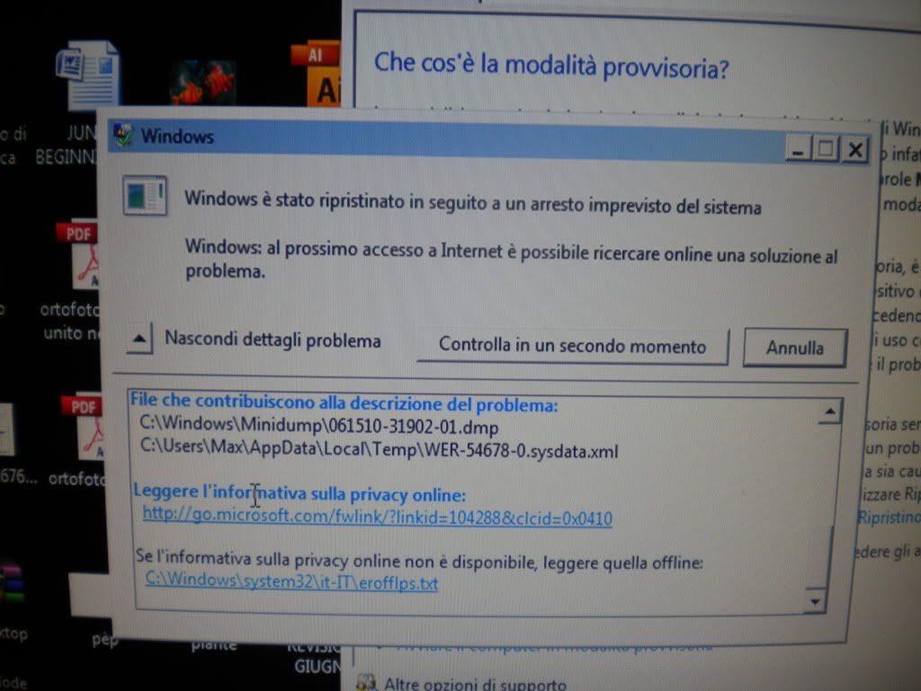 ![]() al riavvio forzato del sistema il messaggio di windows è il seguente: ![]() da subito ho pensato fosse un virus, ed avendo due hard disk di cui uno libero ho provveduto per intallare una nuova copia di windows 7..purtroppo da problemi analoghi, bloccandosi sempre poco dopo l'avvio. Ho paura che a sto punto sia un componente, anche se diversi sono praticamente nuovi...altrimenti problemi nel bios..ma non sono molto esperto. Spero possiate essermi d'aiuto visto che in questo periodo devo preparare gli esami e senza autocad per me è la fine. Ringrazio in anticipo, Max