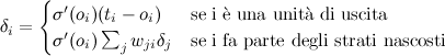 dj = Oj (1 - Oj) * Sommatoria( dk * Wkj ) Per fare questo calcolo io utilizzo una variabile che rimane invariata nel ciclo di aggiornamento successivo (per la sommatoria). Per intenderci, quando ciclo su ogni peso del neurone: Codice: