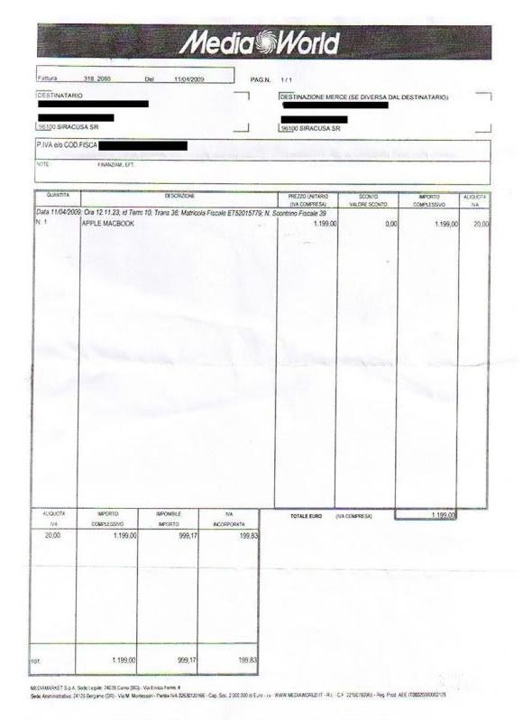 In vendita Apple Macbook unibody aluminium con le seguenti caratteristiche: che trovate in maniera più completa, anche sul sito ufficiale Apple: Macbook unibody aluminium 13" Intel Core 2 Duo a 2,0GHz 2GB (2 x 1GB) di SDRAM DDR3 a 1066MHz (PC3-8500) Serial ATA da 160GB; 5400 giri/min NVIDIA GeForce 9400M Webcam iSight integrata Ultima versione di snow leopard originale il mac presenta un graffio e un'ammaccatura nella scocca esterna che NON PREGIUDICA IN ALCUN MODO IL FUNZIONAMENTO DEL MAC. Per il resto è praticamente immacolato. lo ripeto, IMMACOLATO. Garantisco il perfetto funzionamento in ogni sua parte! E se siete in zona sono disponibilissimo a qualsiasi prova! Il mac arriva con ricevuta d'acquisto originale mediaworld, con la sua scatola originale e tutto quanto compreso al momento dell'acquisto. La richiesta è di euro 550 ss escluse In vendita anche altrove, per questo mi riservo di chiudere la vendita in qualsiasi momento. Per qualsiasi chiarimento o informazione, chiedete! Cercherò di rispondere velocissimamente! code: max 24h L'unico scambio che valuto è con mac mini late 2010 (quello attualmente in store!) o con IPAD 2 (ih ih) ------------------------------------------------------------------------- ![]() ![]() ![]() ![]() ![]() ![]() ![]() ![]() ![]()