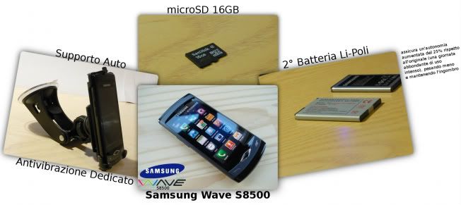 [RN + Sped] Samsung Wave S8500 + Supporto Auto + 2nda Batt. Li-Poli + μSD 16GB = 170€