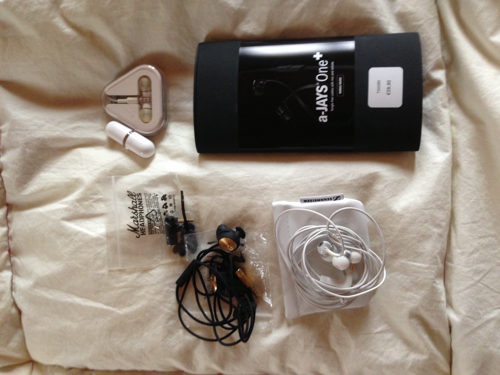 Ciao, per un ricambio tecnologico vendo i miei vecchi auricolari. In particolare: 1. Jays One Plus con remote 20 euro spediti j + 3 2. Marshall minor 30 euro spediti j + 3 3. Apple in-ear con remote 30 euro spediti j + 3 4. Sennheiser CX 300 bianche 20 euro spediti oppure tutti insieme per 70 euro spediti j+3 - PREZZO STRACCIATO! Le Jays sono complete di scatola e scontrino d'acquisto, le Marshall hanno scontrino d'acquisto (ma lo devo recuperare e ci vorranno una decina di giorni), le Apple ne' l'uno ne' l'altro ma hanno la loro box bianca in plastica, le Sennheiser ne' l'uno ne' l'altro ma hanno pochette bianca originale. Tutti sono corredati dei tips originali in varie misure; le Apple hanno qualche segno di usura, le altre no. REGOLE: 1. preferenza scambio a mano zona Pesaro 2. accetto scambio solo con: Shure SE215 nuove A presto, C.