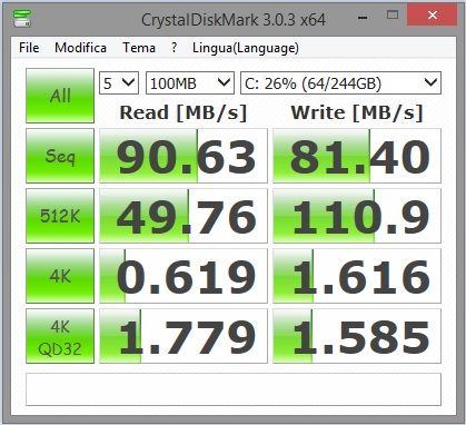 Controlla invece di aver collegato il disco nuovo su una porta sata 3 della scheda madre . A volte ci sono differenze di velocita tra porte sata gestite dal chipset integrato e porte sata gestite dal controller disco aggiuntivo della scheda madre . |