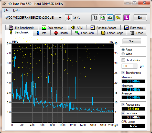 I dati di CrystalDisk sono normali, anzi sono anche troppo alti, credo sia un problema di HDTune .