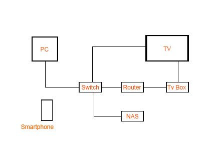 Il mediaplayer puoi attaccarlo al router o allo switch , e' indifferente. Il resto mi sembra tutto ok, come collegamenti