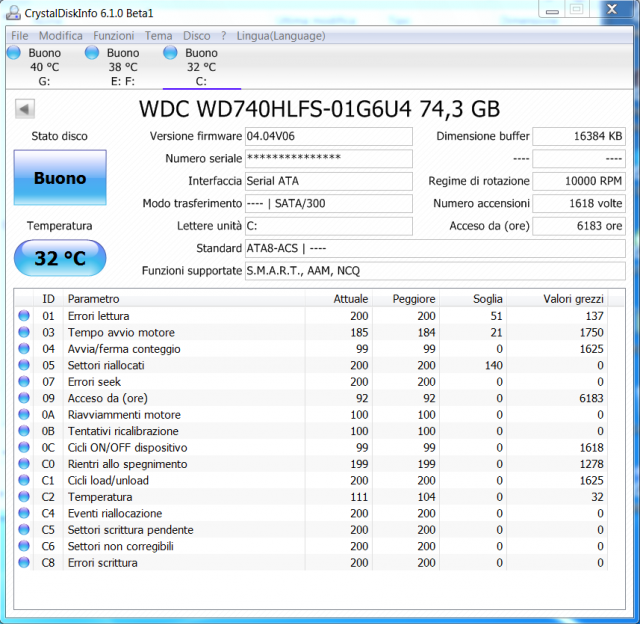 Ottimo anche qui tutto bene, ma facci comunque un benchmark con HDTune può darci informazioni extra che i dati SMART non possono mostrare (anche HDTune è portable se vuoi fai a meno di installarlo).