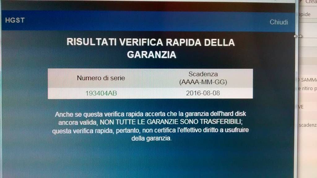 Vendo questo hard disk 2,5" da notebook (ma usabile ovviamente anche su desktop), estratto da chassis portatile di marca Hitachi Touro Mobile acquistato circa un anno fa che risultava dare problemi. Pochissime ore di funzionamento a carico del dispositivo, il disco una volta estratto dallo chassis e collegato ad un PC risulta perfettamente funzionante, ma mi riprometto tuttavia di testarlo con HD Tune in maniera più completa. Info produttore: https://www.hgst.com/products/hard-d...velstar-5k1000 Non c’è ovviamente documento di acquisto del disco in sé (essendo stato acquistato un hard disk portatile e non il componente singolo). Il disco in sé risulta tuttavia in garanzia presso il produttore, verificato brevemente tramite seriale (vedasi immagine). Fornisco questa info (che ritengo importante) "as is", non conosco altro rispetto alla possibilità di far valere eventualmente la garanzia presso il produttore. ![]() ![]() ![]() Vendo al prezzo di eur 35 + ss. Spedizione via corriere tracciabile (7 euro). ================= NOTE generali, regole ========================== Stabilisco i prezzi cercando il miglior compromesso per venditore e compratore, nel rispetto del regolamento e basandomi su brevi ricerche e comparazioni effettuate con altre vendite. Per osservazioni sui prezzi, qualora i miei prezzi risultassero non di gradimento o magari ritenete che possano essere fuori regolamento, contattatemi via email od in pm, dato che può succedere di non consultare il forum giornalmente. Per ogni altra necessità scrivete sul thread. Chi mi conosce sa che tratto il mio hardware (e comunque quello che metto in vendita) con rispetto e passione. Per chi non mi conosce, in firma i link alle mie precedenti transazioni. PS: Vi prego cortesemente di postare se realmente interessati ed intenzionati all'acquisto. Tempo e fiducia sono beni primari e vanno utilizzati con intelligenza. Regole di vendita: 0 - Precedenza al buon senso ed alla soddisfazione reciproca delle parti, nella gestione delle code e delle priorità, nei tempi di risposta, nell'evitare la fretta privilegiando le cose ben fatte, etc. Il tutto con contorno di indispensabile gentilezza. 1 - Precedenza ai blocchi (chi prende più componenti). 2 - Precedenza alla consegna a mano. 3 - Precedenza al mio prezzo (chi si mette in coda rispettando la somma da me richiesta). 4 - Pagamento ricarica Postepay o bonifico (preferito) a vostra scelta, accetto anche Paypal (costi a vs. carico). 5 – I miei feedback dicono che offro e pretendo serietà, correttezza, tempestività nelle risposte, per evitare perdite di tempo reciproche, oltre a gradire immensamente la cortesia da ambo le parti. 6 - Vendo e spedisco solo materiale funzionante, salvo ove diversamente indicato. Per ogni eventuale problema che possiate riscontrare sul vostro hardware, cercherò di fornirvi assistenza ed aiuto in ottica di collaborazione e responsabilità ma, per ovvi motivi di intelligenza, sappiate che siamo nell'ambito di "vendita da privato, esente da ogni garanzia, diritto di recesso, cambio o reso secondo le norme europee"; quindi non potrò accettare la restituzione di materiale dichiarato non funzionante dal compratore. Per tale motivo, generalmente faccio e tengo a disposizione un video per la dimostrazione preventiva al compratore del buon funzionamento dell'hardware prima della vendita. 7 – Spedisco sempre con spedizione tracciabile, imballando al meglio il materiale, con costi a carico ed a rischio del compratore (se gradita la spedizione assicurata, non c'è che da richiederla); nell’improbabile caso di problemi con la spedizione, farò di tutto eventualmente per aiutarvi a risolvere ogni possibile problematica, ma la mia responsabilità termina nel momento in cui consegnerò il pacco al corriere / ufficio postale. 8 - In vendita anche altrove