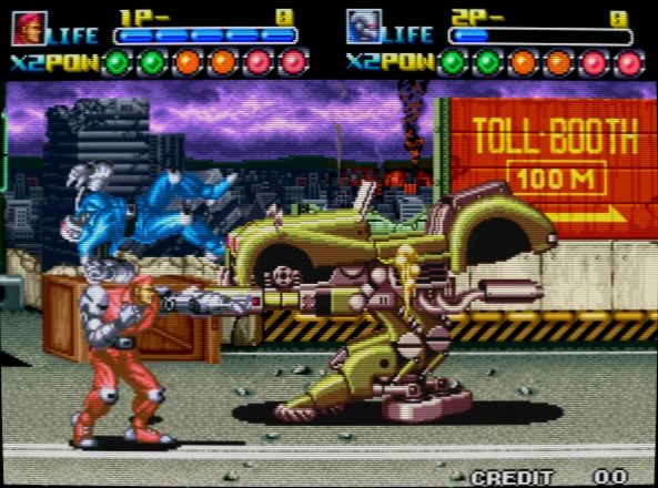 la scena della distruzione della macchina c'era in Street Fighter 2, ma non è un picchiaduro a scorrimento, e non è un gioco Neo Geo, ma Capcom