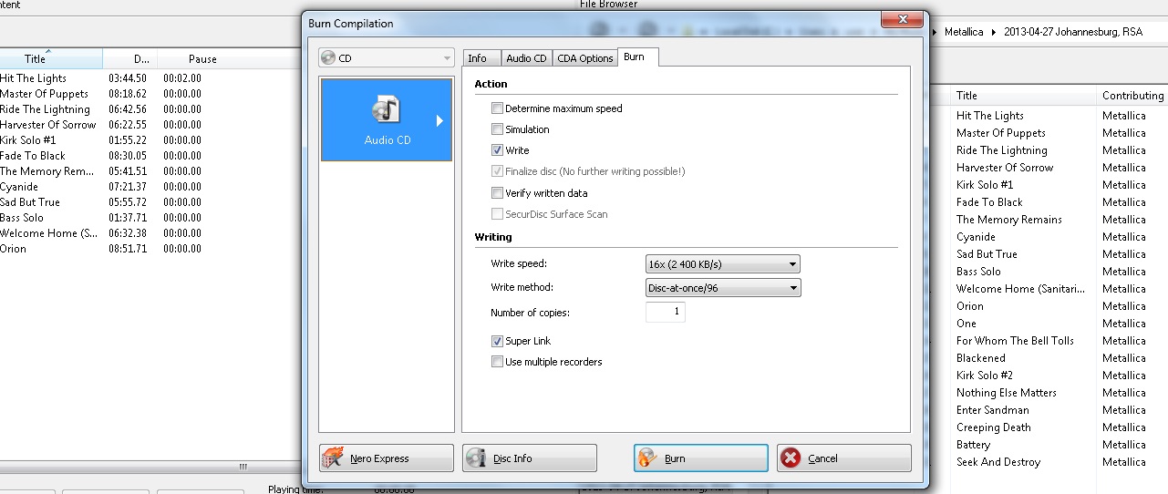Non ho mai masterizzato un CD audio, ma adesso ho provato a masterizzarne un paio, usando Nero.