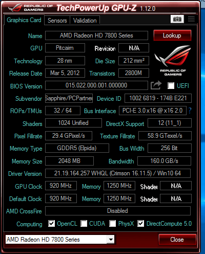 Salve. Come da titolo vendo, per passaggio a scheda più potente, la mia Sapphire Radeon HD7850 Dual-X OC con 2GB GDDR5. I dettagli della scheda in questo screenshot.