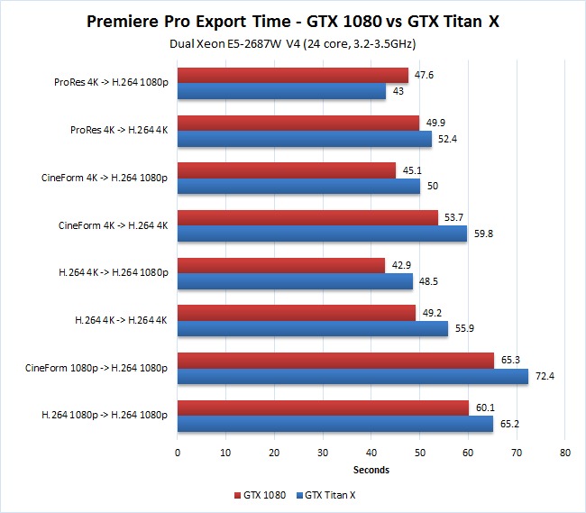 facico un esmepio di test con animazione 2D https://www.pugetsystems.com/pic_dis...800&height=800 come vedi un 6950X va il 10% melgio di un I7 6700K, il problema e ceh costa il 500% in piu insomma come pagare una villa 5 milioni di euro anziche 1 milione, solo xke ha in piu il garage doppio x cuis e usi molto AE di solito consiglierei un 6core/12thread, come l'I7 6800, che consdiera sta sui 400 euro pare ceh usciranno modelli di cpu AMD in quella stessa fascia x cui si consiglio spassionato aspetta di vedere come vadano magari perdi una settimana ma ci guadagni 3/500 euro o spendi uguale x avere una cpu piu potente nn capisco cosa ti abbiano voluto dire se nn ha cuda core nn ha shader processor, se nn ha i processori nn puo fare calcoli, allora nn e piu una shceda video forse volevano parlarti della titan o delle quadro cmq su AE conta la potenza bruta, quindi uan quadro nn serve https://www.pugetsystems.com/pic_dis...800&height=800 fra gtx e titan la differenza e minima, ma una costa il dopppio dell'altra se vuoi pare ceh il 28 febbraio nvidia presentera la 1080Ti, quindi una scheda che sara una via di mezzo fra quelle due se nn hai fretta cercherei di vedere anceh quella te ne basta una di scheda video x cominciare |