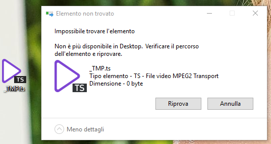 Utilizzo un programma per tagliare i video che mi crea un file temporaneo, che viene immediatamente eliminato una volta finito, ma ora non so perchè rimane l'icona visibile anche se il file non esiste più.