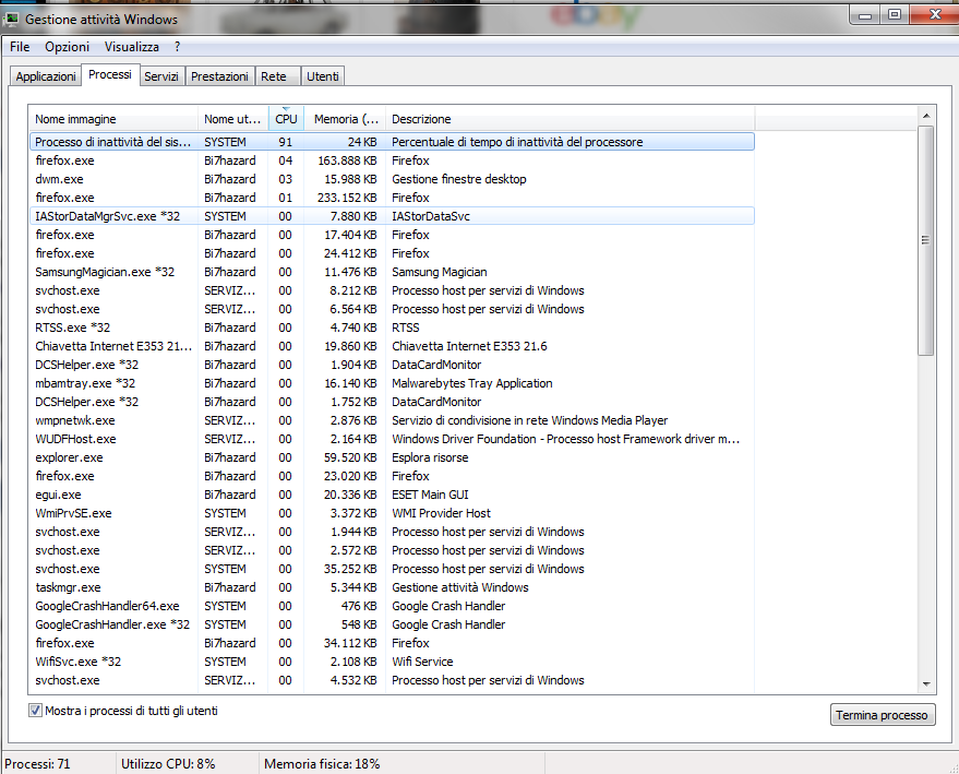 dalla schermata a me sembra che la cpu sia all'8%, non al 100%