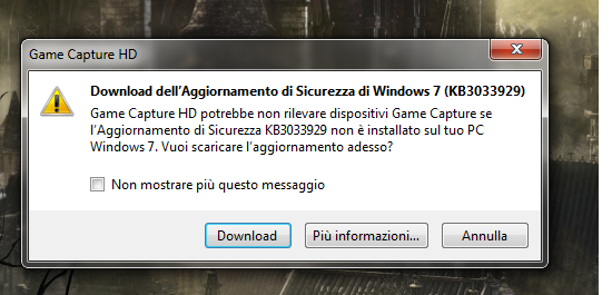 Prova a disinstallare il KB3033929-x64 .