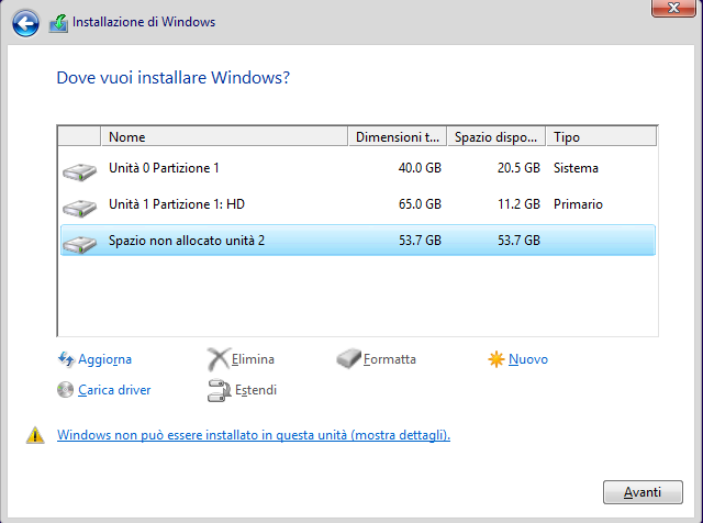 Aiuto formattazione partizione disco rigido e installazione Windows 10