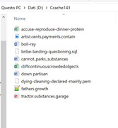 da qualche tempo a questa parte mi ritrovo nel pc delle cartelle sospette. Queste cartelle si trovano nella partizione dei dati, nascoste ed hanno nomi non noti, quali ad esempio "Ccache143" e "tworking240". Cercando online non ho trovato nulla correlato a queste cartelle. Dento ci sono dei file che potrebbero addirittura sembrare file di lavoro. Qui trovato lo screenshot del contenuto delle cartelle. La cosa curiosa è che il tipo di file contenuto tra le due cartelleè lo stesso nonostante le tipologie siano diverse. ![]() ![]() Altra cosa curiosa è che quando queste cartelle le cancello, si ricreano immediatamente. Ho provato a passare malwarebytes e Cyber ramsomfree ma non ho trovato nulla. A voi queste cartelle vi dice qualcosa? Preciso che ho win10 AU.