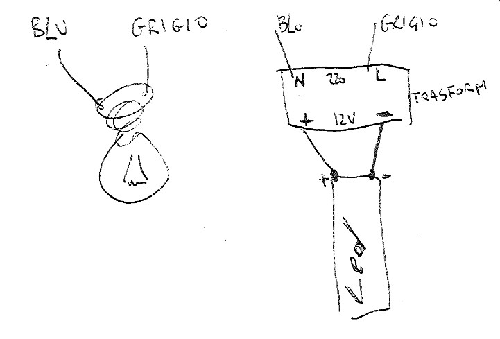 c'è qualche elettricista o qualcuno che se ne intende che mi aiuti? Voglio mettere una striscia a led al posto della lampadina. Ho comprato il trasformatore 220 a 12v. Ho collegato per fare un test la striscia al trasf e poi l'ho collegato ad una presa di corrente volante. TUTTO OK. Allora tranquillo e felice sono andato dove c'è la lampadina, ho staccato i 2 fili dal porta lampada e li ho collegati al mio trasformatore.... quando accendo il tasto la striscia a led lampeggia... i fili sono uno BLU e uno Grigio. il tasto è un devia (credo...) perché la lampadina la comando sia da un punto che da un'altro. Perché fa cosi? c'è una soluzione?