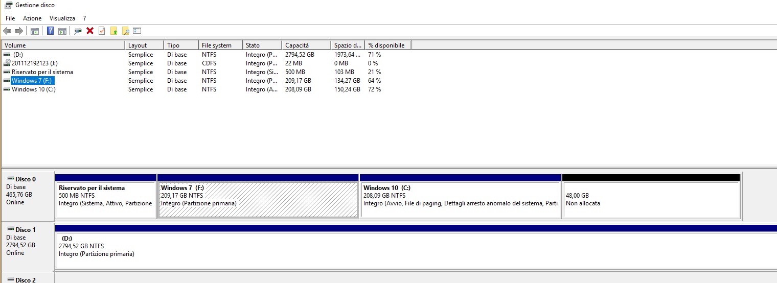 ![]() La maniera più rapida a mio parere è questa: Start, scrivi msconfig, avvia "Configurazione di sistema". Scheda opzioni di avvio, dovresti trovare indicati entrambi i sistemi operativi. Quelli che vedi nella schermata iniziale di scelta (dualboot). Seleziona Windows 7 e clicca su elimina. Dovrebbe restare indicato solo Windows 10. Attenzione che da questo momento Windows 7 non sarà avviabbile. Riavvia il computer e verifica se parte direttamente Windows 10. Se è così, puoi andare su gestione disco e formattare la partizione che contiene attualmente Windows 7 (F: ), la potrai usare come partizione per mettere i tuoi file. Soluzione più complessa: Scarica EasyBCD https://neosmart.net/EasyBCD/ Con lui puoi togliere la voce Windows 7 dal multiboot e successivamente formattare da gestione disco la partizione attualmente occupata da Windows 7. Attenzione che potrà capitare che gestione disco si rifiuti di farti formattare la partizione (F: ), a volte capita che si intestardisca a "proteggere" le partizioni in cui ci sono dei sistemi operativi. In questo caso si deve ricorrere a software esterni al sistema operativo, ad esempio Easus Partiton Master free: https://www.easeus.com/partition-manager/epm-free.html Oppure MiniTool Partition Wizard Free: https://www.partitionwizard.com/free...n-manager.html Infine chiudo con al solita DOVEROSA chiosa: attenzione che giocare con le partizioni e i sistemi di boot può essere pericoloso, sbagliare qualcosa può comportare la perdita di dati e file. Fortemente raccomandato un backup di tutto quello che non si intende assolutamente perdere per qualsiasi ragione. |
