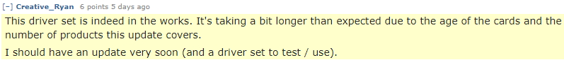 Bene. Ora non ci sono dubbi. Ma credo che usciranno nuovi driver anche per la tua scheda. Invece per la mia vanno bene i vecchi.