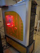 Vendo Case Cooler master stacker di parecchi anni fa', con segni di usura, sportello laterale sinistro con plexiglass arancione UV e foro per ventola da 200mm, due cestelli per hd per un totale di 4 hd, regalo adattatore per ssd o drive da 2.5".