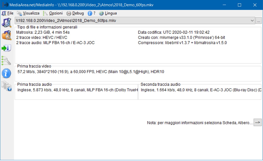 I file da Nas dipende , un 4K HDR con dolby true hd atmos arriva anche a 90 Io uso Kodi e se vuoi puoi abilitare e disabilitare xray della fire per vedere un po di cosucce , cpu banda etc etc ![]()