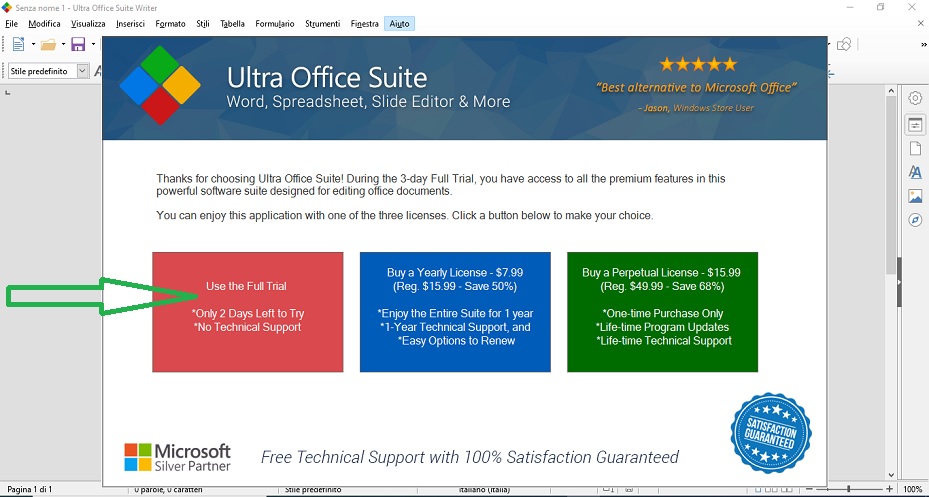 Come si fa a non approfittare di una Promozione del genere Detto, fatto C' è da dire che c'è una piccola limitazione, ma ci può stare Ultra Office Suite 3.1 now offers a Free Trial version and a Limited Trial version. The Free Trial version allows you to try all features of the App for 3 days. After 3 days, the print and export to PDF features will be locked (this is the Limited Trial Version) until you purchase a Full version license.