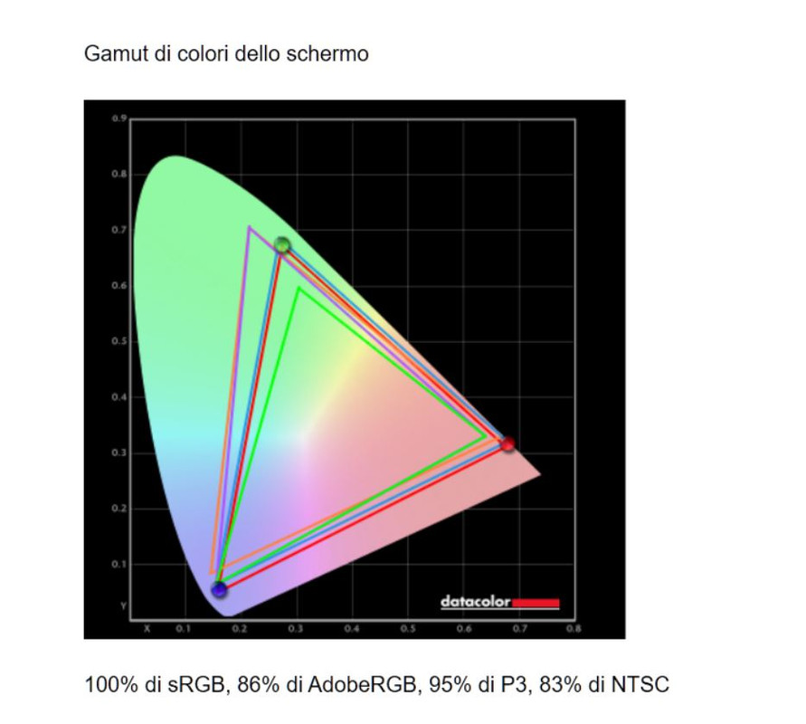 Post calibrazione con la sonda spyderx ha ottenuto un'ottima fedeltà (srgb reale al 100% e 95% di P3), se volete poi vi mando il profilo di colore. Preferita di gran lunga la consegna a mano, ho scatola e full bundle, no dead pixel. Prezzo: 260euro