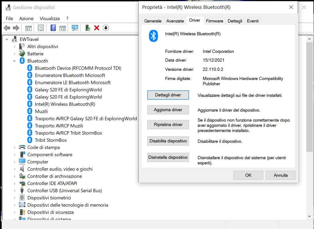 Perchè in Dispositivi e Stampanti ...... non si riesce a addizionare il Tribit? C'è solo il mio smartphone. Ma è normale? Poi vorrei dire che il driver del Bluetooth è del 2006: 21/06/2006 Ho provato ad aggiornarlo ma non me lo aggiorna. L'ho disinstallato e poi riavviato il portatile, ma vedo sempre lo stesso driver. Ma è normale? Lascio una foto: