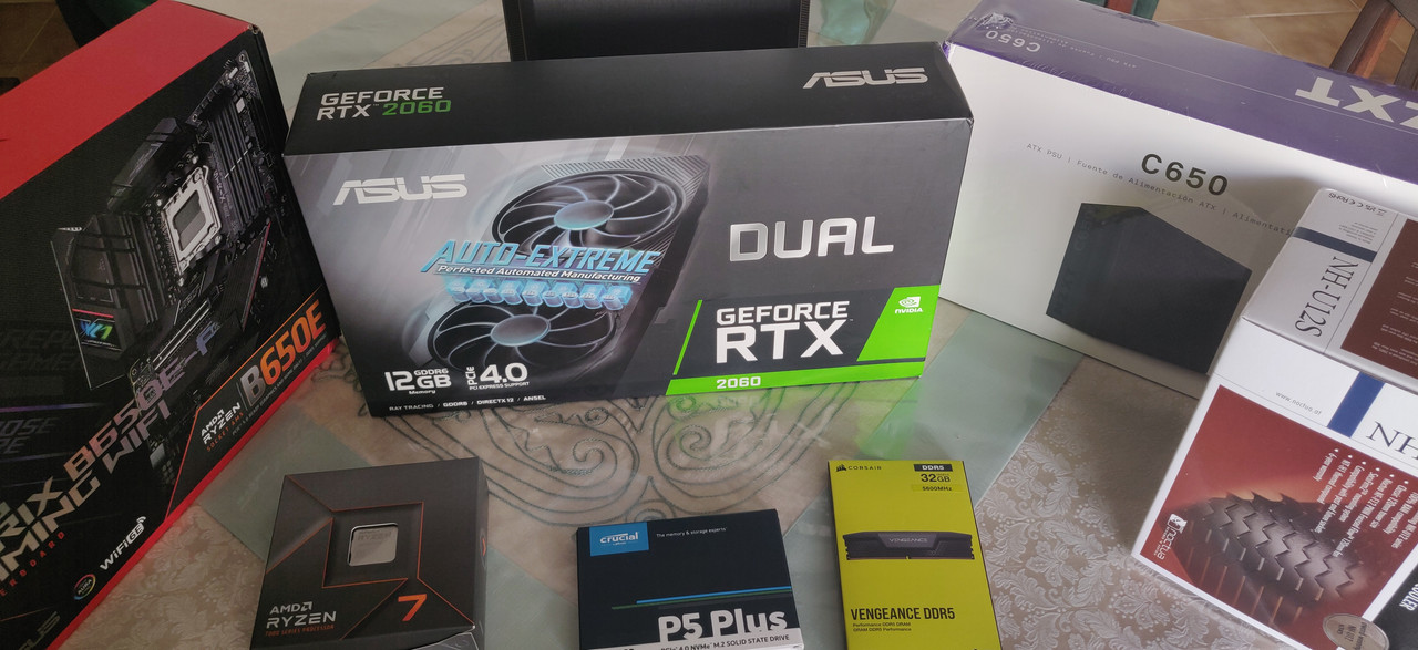 son d'accordo puoi tenerlo come pc secondario di casa lasciandolo cosi senza smontare nulla x il nuovo ti mostro un esempio di cosa si potrebbe fare con circa 1500 euro in "amazzonia" (nn guardare i prezzi singolo xke e stata fatta la scorsa settimana quindi sicuramente qualche variazione ci sarà stata) Crucial P5 Plus 1TB SSD di Gioco Interno M.2 PCIe Gen4 NVMe - Fino a 6600MB/s - CT1000P5PSSD8, Si apre in una nuova scheda Crucial P5 Plus 1TB SSD di Gioco Interno M.2 PCIe Gen4 NVMe - Fino a 6600MB/s - CT1000P5PSSD8 117,41 € Disponibilità immediata Pattern name: Single Capacità: 1 TB Q.tà: Q.tà:1 AMD Ryzen™ 7 7700X Processeur, 8 Cœurs/16 Threads Débridés, Architecture Zen 4, 40MB L3 Cache, 105W TDP, Jusqu'à 5,4 GHz Fréquence Boost, Socket AMD 5, DDR5 & PCIe 5.0, Si apre in una nuova scheda AMD Ryzen™ 7 7700X Processeur, 8 Cœurs/16 Threads Débridés, Architecture Zen 4, 40MB L3 Cache, 105W TDP, Jusqu'à 5,4 GHz Fréquence Boost, Socket AMD 5, DDR5 & PCIe 5.0 367,00 € Q.tà: Q.tà:1 ASUS ROG STRIX B650E-F GAMING WIFI Scheda Madre Gaming ATX, AMD B650, AM5, DDR5, PCI 5.0, WiFi 6E (802.11ax), Intel 2.5Gb Ethernet, ROG SupremeFX 7.1, 3xM.2, 4xSATA 6GB/s, Aura Sync RGB, Nero, Si apre in una nuova scheda ASUS ROG STRIX B650E-F GAMING WIFI Scheda Madre Gaming ATX, AMD B650, AM5, DDR5, PCI 5.0, WiFi 6E (802.11ax), Intel 2.5Gb Ethernet, ROG SupremeFX 7.1, 3xM.2, 4xSATA 6GB/s, Aura Sync RGB, Nero 295,74 € Generalmente spedito entro 3-4 giorni. Nome stile: B650E-F GAMING Taglia: ROG STRIX Q.tà: Q.tà:1 Corsair Vengeance DDR5 32 GB (2x16 GB) 5600MHz C36 Memoria per Desktop (Regolazione della tensione a bordo, Profili XMP 3.0 personalizzati, Fattore di forma compatto, Compatibile con Intel) Nero, Si apre in una nuova scheda Corsair Vengeance DDR5 32 GB (2x16 GB) 5600MHz C36 Memoria per Desktop (Regolazione della tensione a bordo, Profili XMP 3.0 personalizzati, Fattore di forma compatto, Compatibile con Intel) Nero 159,00 € Generalmente spedito entro 3-4 giorni. Nome stile: 5600 MHz Taglia: 32GB (2x16GB) Colore: Nero Q.tà: Q.tà:1 NZXT C650 - NP-C650M-EU - Alimentatore da 650 Watt - Certificato 80+ Gold - Controllo ibrido silenzioso della ventola - Cuscinetti fluidodinamici - Design modulare - Alimentatore da gioco ATX, Si apre in una nuova scheda NZXT C650 - NP-C650M-EU - Alimentatore da 650 Watt - Certificato 80+ Gold - Controllo ibrido silenzioso della ventola - Cuscinetti fluidodinamici - Design modulare - Alimentatore da gioco ATX 106,79 € Idoneo alla Spedizione GRATUITA. Regala questo articoloRegala questo articolo Ulteriori informazioni Q.tà: Q.tà:1 ASUS Dual GeForce RTX 2060 EVO Scheda Grafica, 12GB GDDR6, PCIe 3.0, HDMI 2.0b, DisplayPort 1.4, DVI, Due Ventole Axial-Tech, Tecnologia 0dB, Auto Extreme, PSU Consigliata 500W, GPU Tweak II, Nero, Si apre in una nuova scheda ASUS Dual GeForce RTX 2060 EVO Scheda Grafica, 12GB GDDR6, PCIe 3.0, HDMI 2.0b, DisplayPort 1.4, DVI, Due Ventole Axial-Tech, Tecnologia 0dB, Auto Extreme, PSU Consigliata 500W, GPU Tweak II, Nero 341,50 € Generalmente spedito entro 3-4 giorni. Q.tà: Q.tà:1 Noctua NH-U12S redux, Dissipatore di calore ad alte prestazioni con ventola 120mm NF-P12 redux-1700 PWM (Grigio), Si apre in una nuova scheda Noctua NH-U12S redux, Dissipatore di calore ad alte prestazioni con ventola 120mm NF-P12 redux-1700 PWM (Grigio) 52,90 € Disponibilità immediata Q.tà: Q.tà:1 TORRE ATX BE QUIET! PURE BASE 500 GRAY INSONORIZADA/INCLUYE 2 VENT. 140MM BG036, Si apre in una nuova scheda TORRE ATX BE QUIET! PURE BASE 500 GRAY INSONORIZADA/INCLUYE 2 VENT. 140MM BG036 99,19 € Disponibilità immediata Colore: Grigio metallizzato. Q.tà: Q.tà:1 |