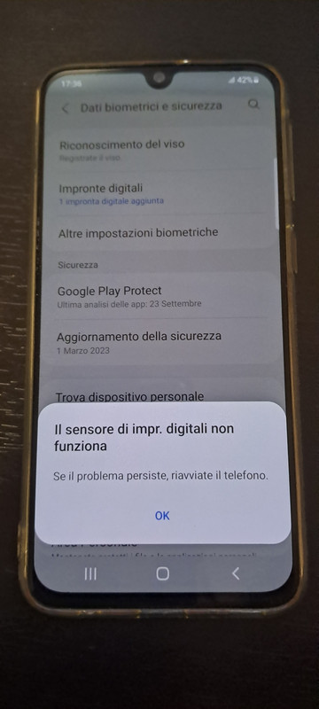 codice modello sm-a40sfn/ds, acquistato su amazon alcuni anni fa, utilizzato con cura sempre con cover, nessun graffio, aggiornato all'ultima rom ufficiale, fornisco confezione di vendita con accessori originari mai utilizzati, perfettamente funzionante tranne il sensore impronte: di punto in bianco (senza alcun evento traumatico) qualche settimana fa ha iniziato ad accusare sporadici mancati riconoscimenti dell'impronta, reset vari ed eventuali (compreso ripristino rom via odin) in un qualche modo risolvono in via temporanea ma dopo un lasso di tempo non meglio determinato il sensore si rimette a "perdere colpi" e si arriva alla situazione in foto