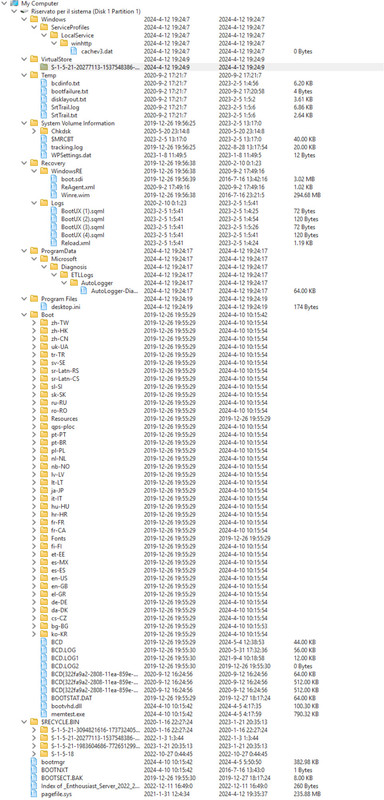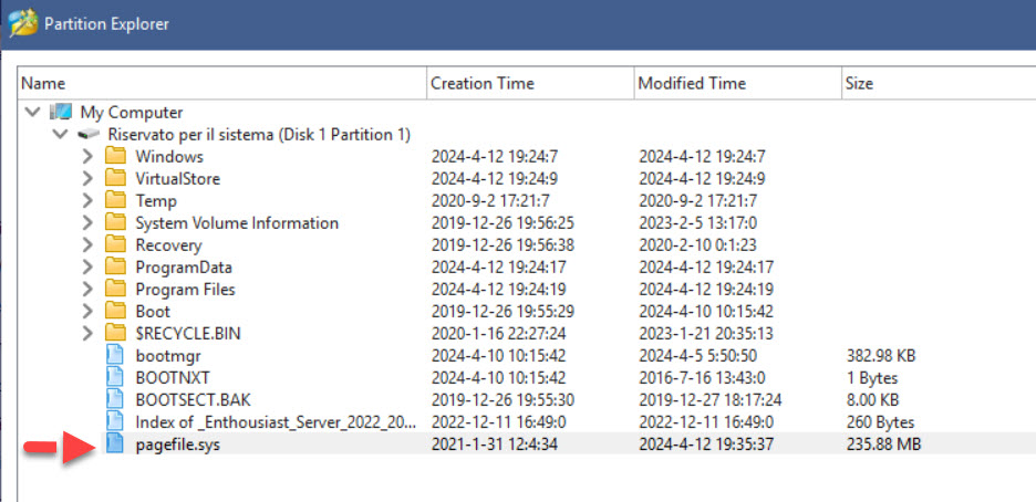Comunque sì certamente puoi cancellare quel pagefile che essenbdo su una partizione senza lettera di unità non dovrebbe appartenere a nessuno dei due Windows "regolari" . Assegna una lettera di unità, apri esplora file ae prova a cancellarlo. Se lo stupidone ti risponde che non è possibile perché file di sistema, prova in modalità provvisoria, dal prompt, powershell insomma il modo si troverà. Al limite boot con uno Windows "live" o una distribuzione di Linux, non esistono file incancellabili Avrei la curiosità di sapere cosa contiene quella partizione nella realtà, è denominata riservata per il sistema ma all'interno sembra esserci una installazione di Windows seppur non "regolare", cioè in così tanto piccolo spazio. Vedo un Entusiast Server... sai che cosè? Ultima modifica di Nicodemo Timoteo Taddeo : 04-05-2024 alle 09:04. |
