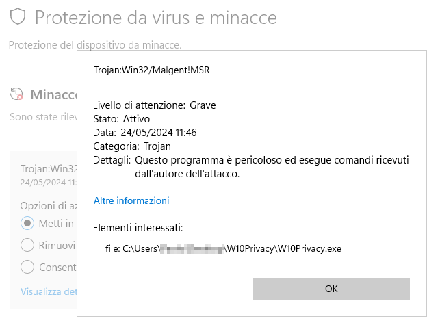 il tool che ho postato permette di eludere un certo traffico dati da pc a server microsoft e altri quindi la stessa MS lo rileva come minaccia! come suggerisce Nicodemo in rete ci sono svariati siti per uno scan online, e fare un upload di 1 file da 2MB non è molto impegnativo, giusto per essere sicuri di non usare tool non affidabili è certo che il solo defender che lo rileva come minaccia (o trojan) lascia il tempo che trova |