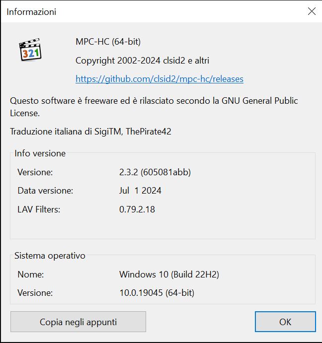 Ti parlo della versione https://www.videohelp.com/software/MPC-BE