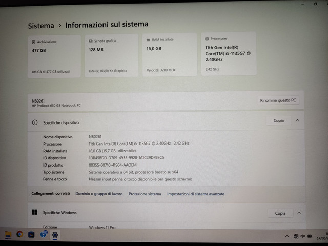 Si tratta di un I5, 16gb ram, 500gb ssd, display 15" e win 11. E' completo di caricabatteria. Il notebook è perfettamente funzionante ed esteticamente perfetto. Aggiungo cavo di sicurezza e zaino tucano mai usato. Solo con consegna a mano a Milano e prov. est ... prezzo 400€ ![]() ![]() ![]() ![]() ![]() ![]() ![]()