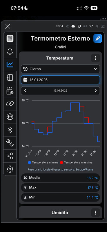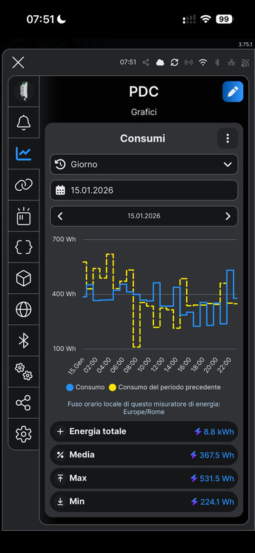 0,5 kWh in un giorno ? in un minuto ? in un'ora ? per quello di norma si parla di potenza media.. anche io ho gli shelly e confermo che usano un sistema orribile per gestire le informazioni, d'altro canto non sono fatti per integrare i valori che leggono e quindi mettono solo il consumo orario senza rilevare potenza di picco etc.. non è il loro lavoro d'altro canto.. detto questo.. il 15 gennaio ha avuto una media di oltre 6 gradi sopra la media storica.. bel giorno come riferimento.. Arpa Veneto dice.. https://www.arpa.veneto.it/temi-ambi...play-file/file Quote: