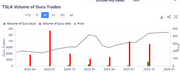Il motivo per cui $TSLA è sopravvalutata dipende da un lato dai contatti di Musk con il Governo e la possibilità di trasferire liquidità dalle altre sue aziende e dall'altro dall'hype sui prodotti che alimenta l'acquisto da parte dei fondi pensione USA su S&P500 che sperano di guadagnare qualcosina. Inoltre Tesla sta smettendo di fare automobili e sta spostando il business verso i robot casalinghi, cosa che aumenta l'hype di un futuro radioso e pieno di dividendi. Riporto di seguito la valutazione di un sito specializzato (GuruFocus) che mostra la valutazione di TSLA a 243$ anzichè 431$, inoltre da un altro grafico che metto sotto si vede come i volumi dei grandi investitori di TSLA (i Guru) siano tutti orientati sulla vendita di grandi porzioni di azioni nel 2025 (per diminuire gradualmente l'esposizione). ![]()