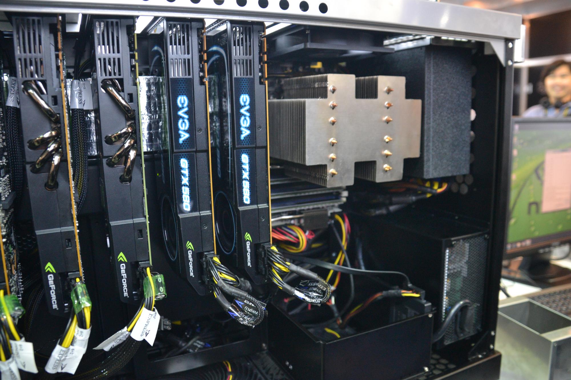 Nello stand Silverstone del Computex 2011 troviamo chassis dalla forma particolare, compreso un sistema dedicato al GPU computing con 6 schede video GeForce ad operare in paralleloData: 02/06/2011 Luogo: Taipei, Taiwan permalink: