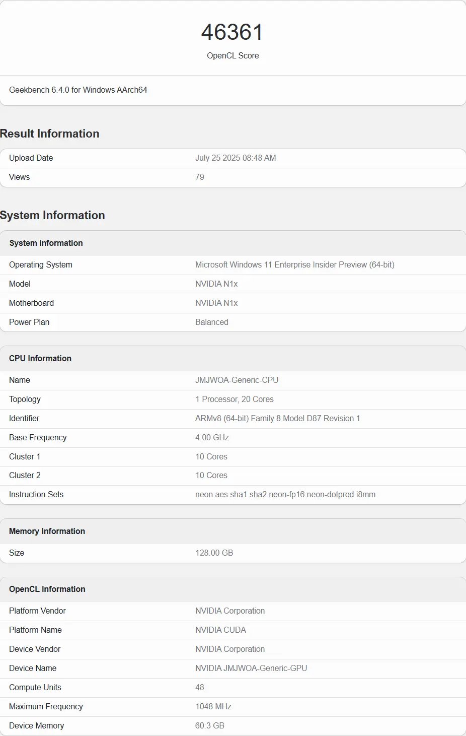 Dopo le indiscrezioni sul rinvio al 2026 per svariati problemi sia di carattere hardware che software, il SoC N1X di NVIDIA torna a far parlare di sé. Un recente test apparso su Geekbench, relativi a un engineering sample, rivelano informazioni dettagliate sulla componente grafica: la N1X integra una GPU basata su architettura Blackwell con ben 6144 CUDA core, esattamente come una GeForce RTX 5070 desktop.