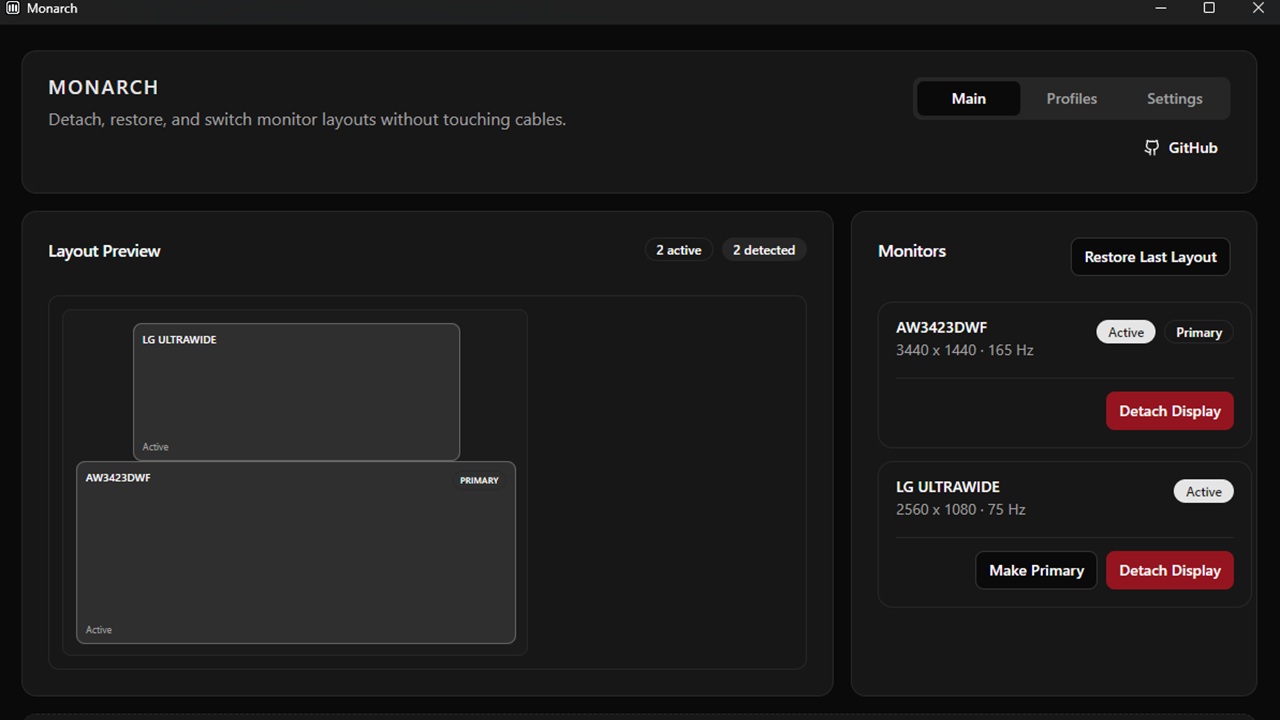 Monarch è un nuovo tool gratuito che semplifica la gestione di configurazioni multi-monitor su Windows. Permette di disattivare display specifici via software, creare profili personalizzati e utilizzare scorciatoie globali. Inoltre, la versione 1.1.0 ha introdotto le hotkey rapide per una gestione ancora più rapida