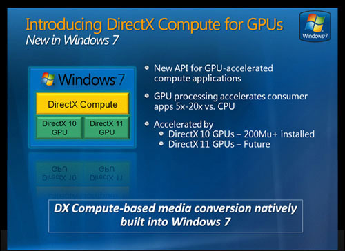 Con il debutto del sistema operativo Windows 7 di Microsoft la scheda video assumerà un ruolo ancor più importante rispetto al passato, grazie alla possibilità che questa venga utilizzata non solo per la gestione della parte grafica. Se con Windows Vista il ruolo dell'accelerazione 3D era stato ben più importante che con Windows XP, questa evoluzione del peso della scheda video nel bilanciamento complessivo delle prestazioni del sistema tenderà a diventare ancor più importante anche con Windows 7.